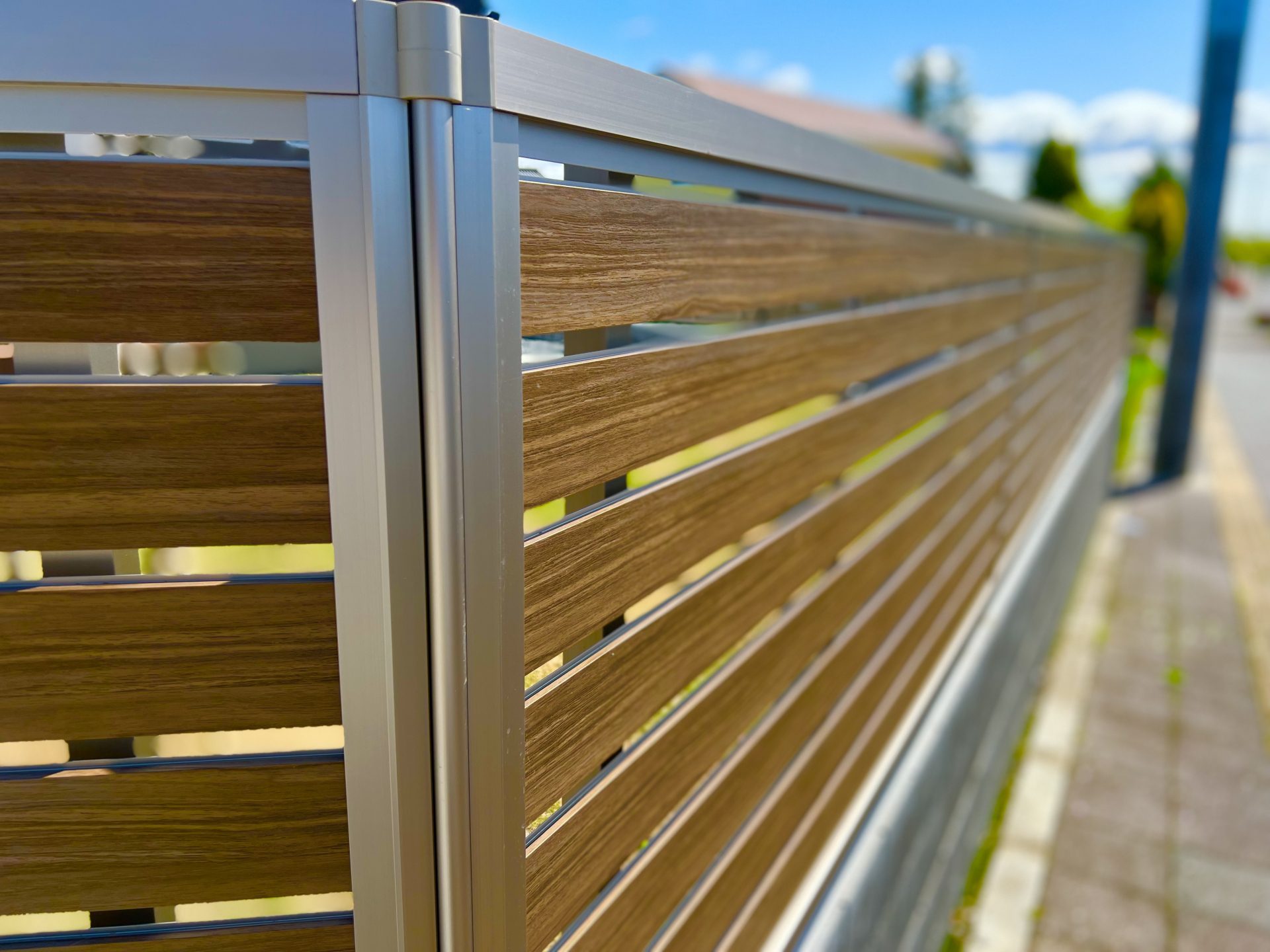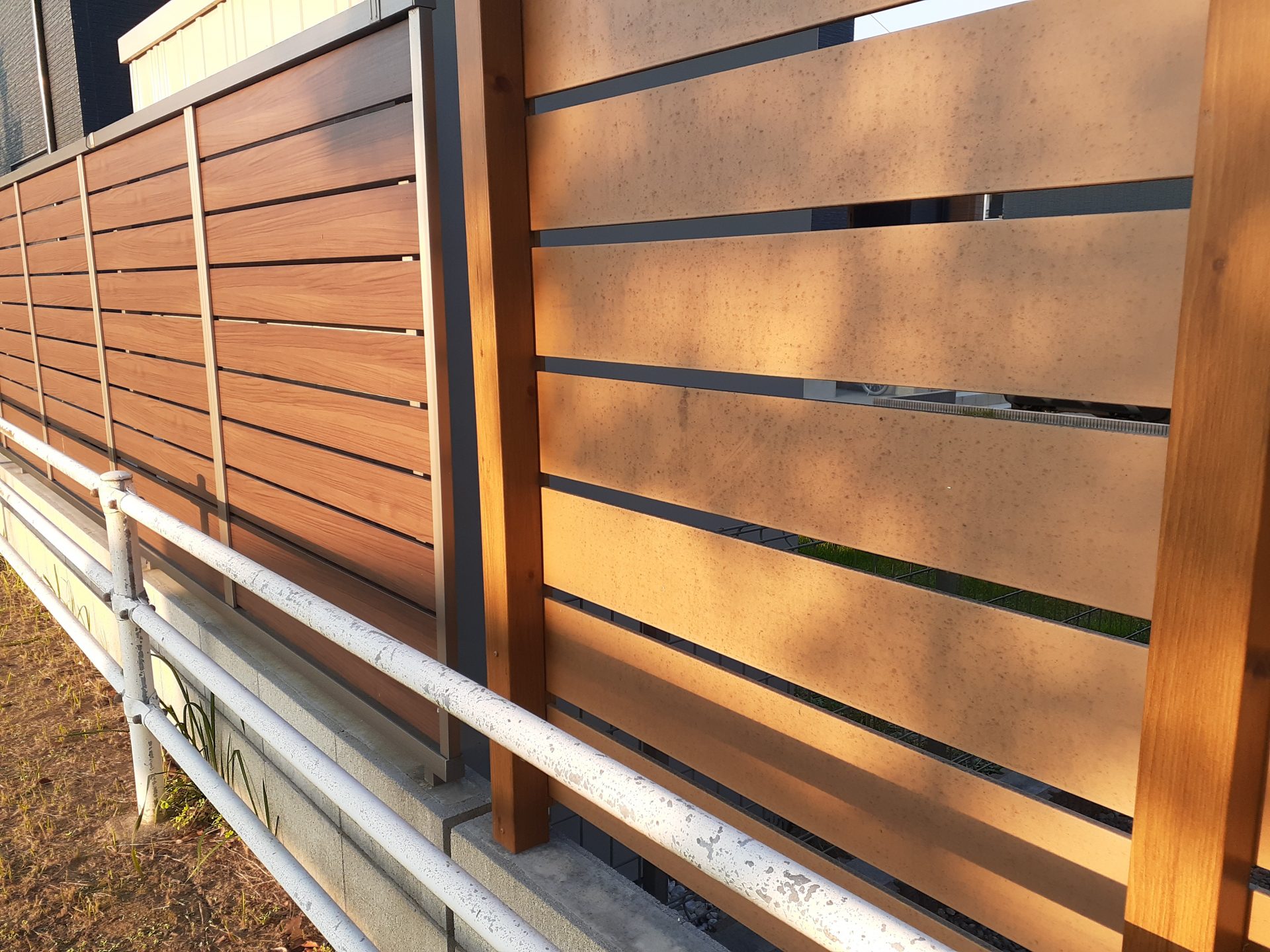 もっとも一般的で確実な目隠し方法が、フェンスの設置です。素材やデザインの選択肢が豊富で、木目調・アルミ・スチール・樹脂製など、住宅のスタイルに合わせて自由に選べます。完全目隠しタイプは視線をしっかり遮り、ルーバー型や格子型は風や光を取り込みながら適度な抜け感を演出できます。