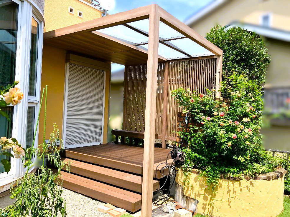お手入れの大変な天然芝を人工芝と防草シートに。