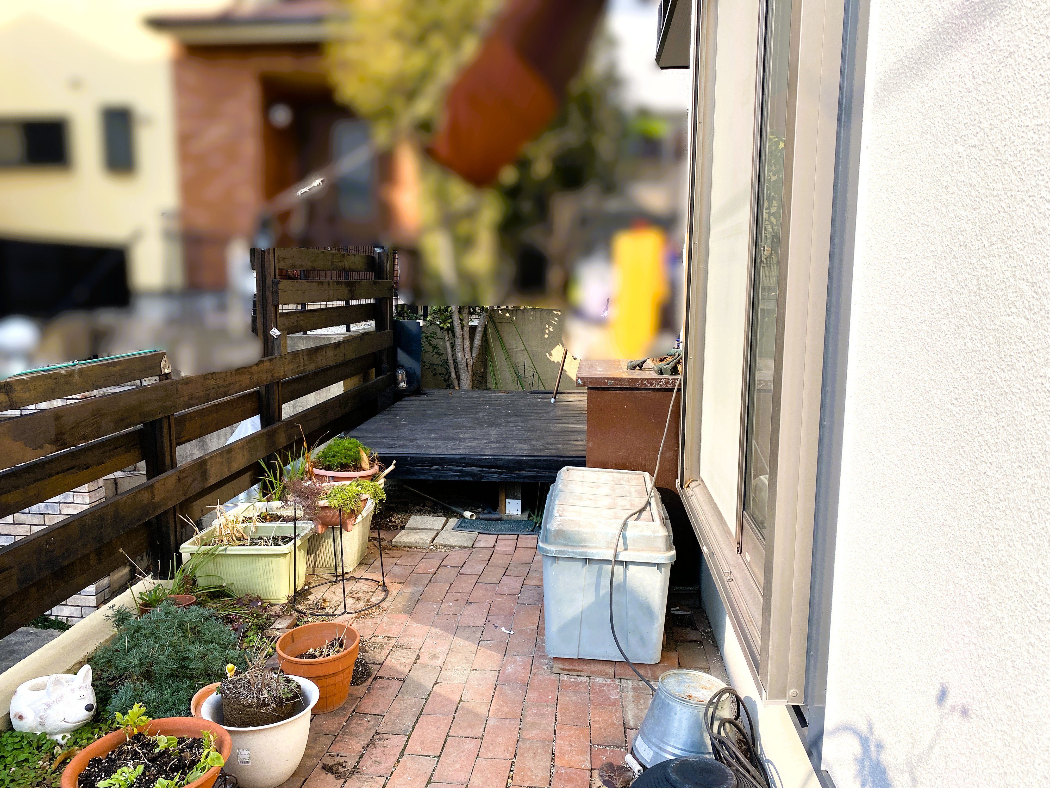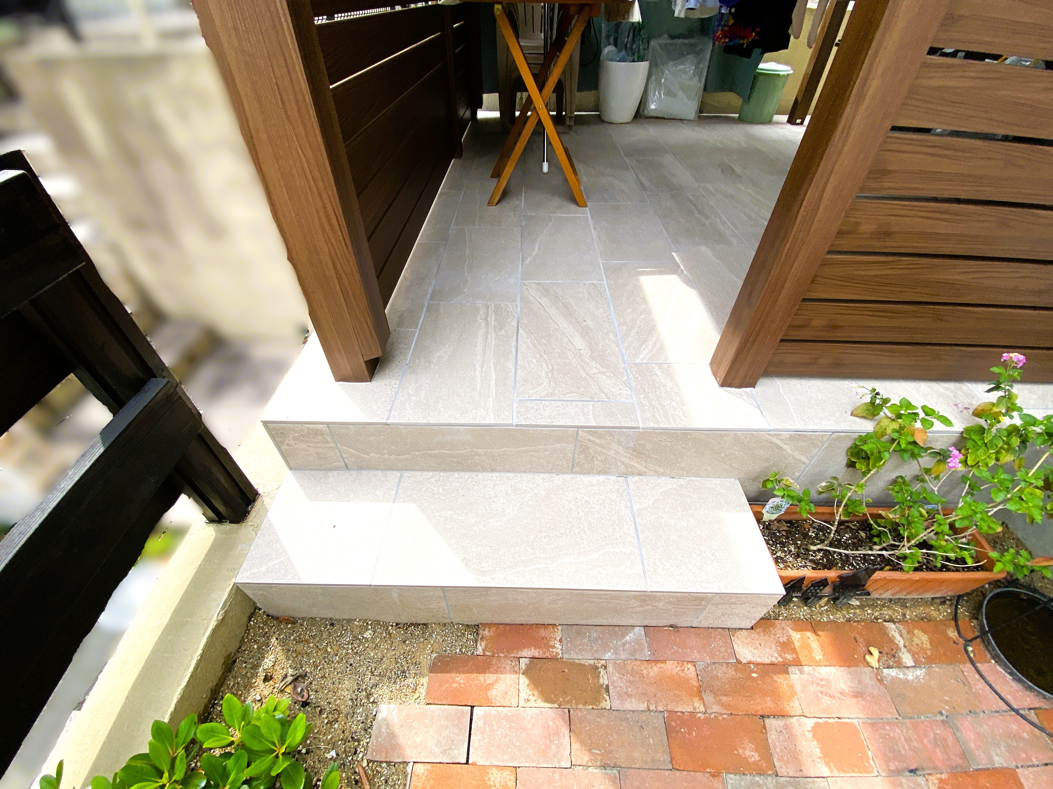 ウッドデッキとは違い反りもなく、タイルには色ムラもあるため経年劣化による色あせも目立ちにくいので