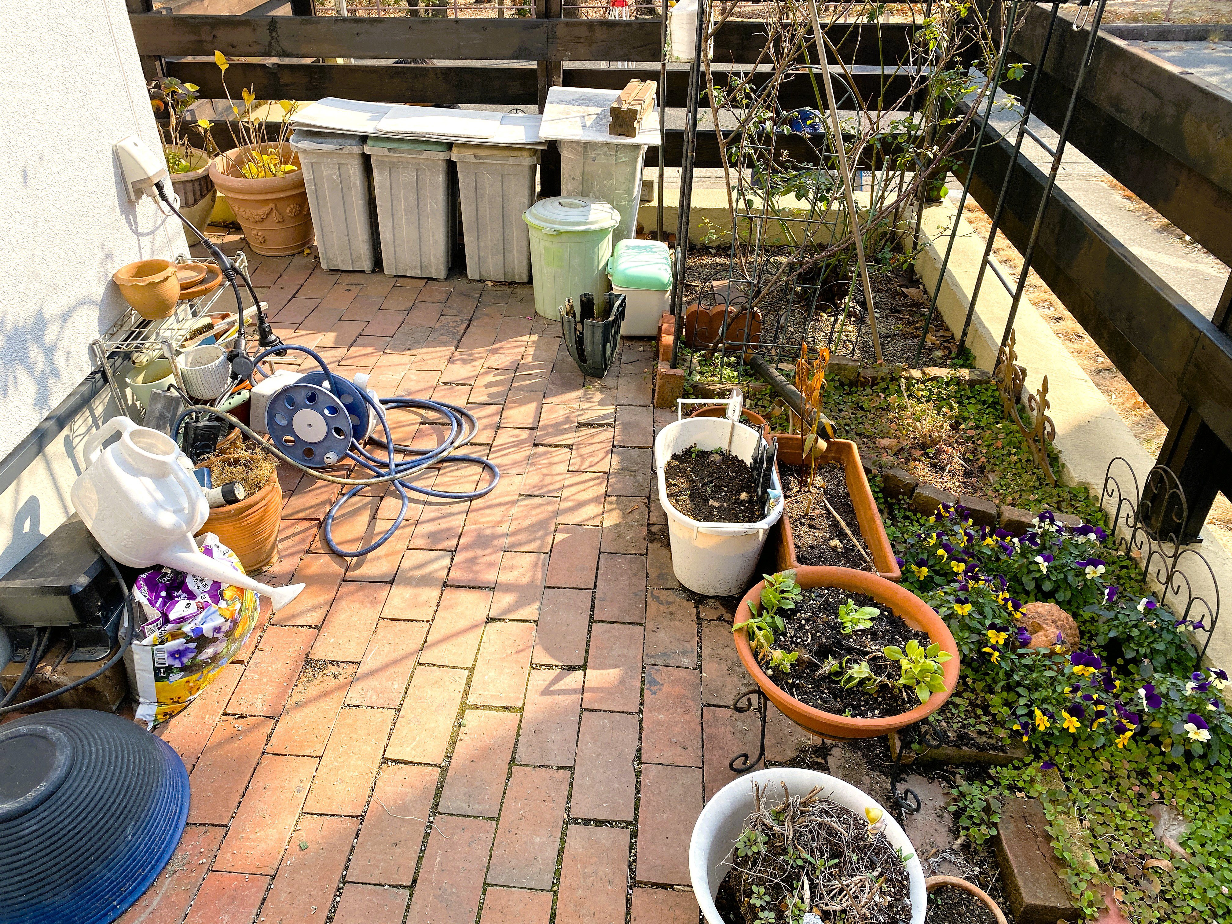 ・花壇 既存レンガ再利用 柾平立て
