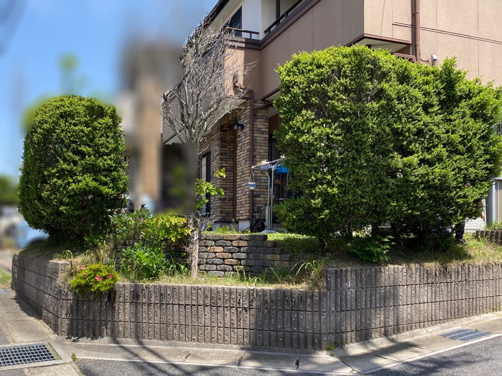 お庭を広く使えるように、既存の樹木を撤去して目隠しフェンスを設置しました。