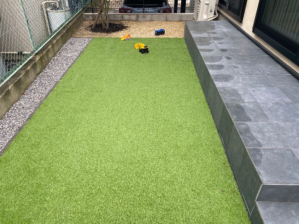 お庭には1年中緑鮮やかな人工芝を敷き、窓からの景観を楽しみながらも、お子様が遊べる空間に仕上げました。
