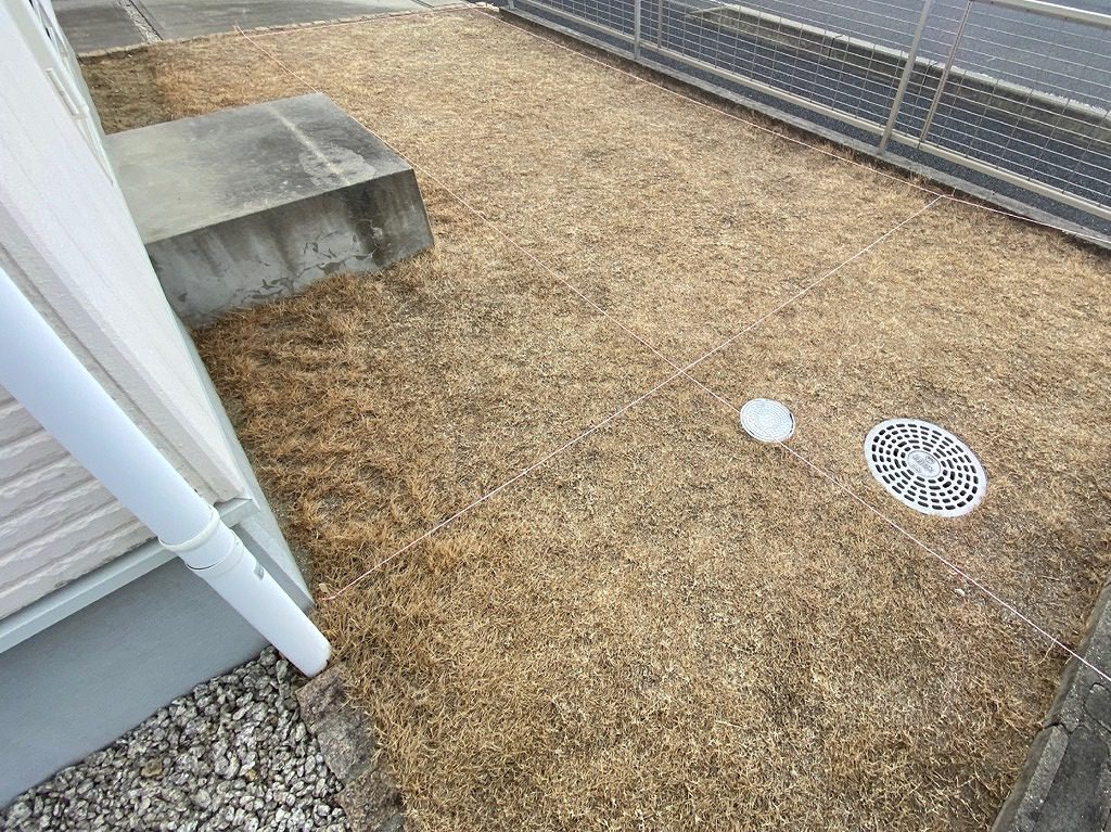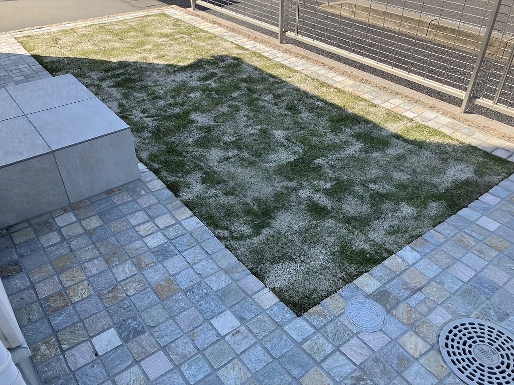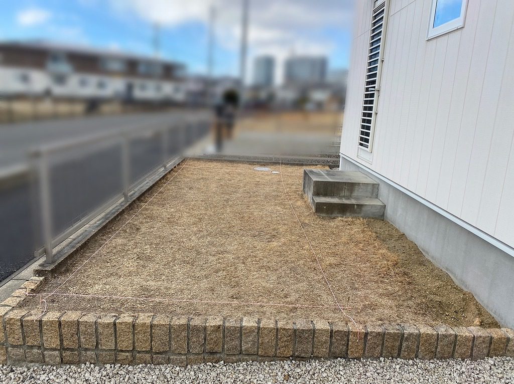 中央には芝を配置することで、やわらかさを感じられるお庭となりました。